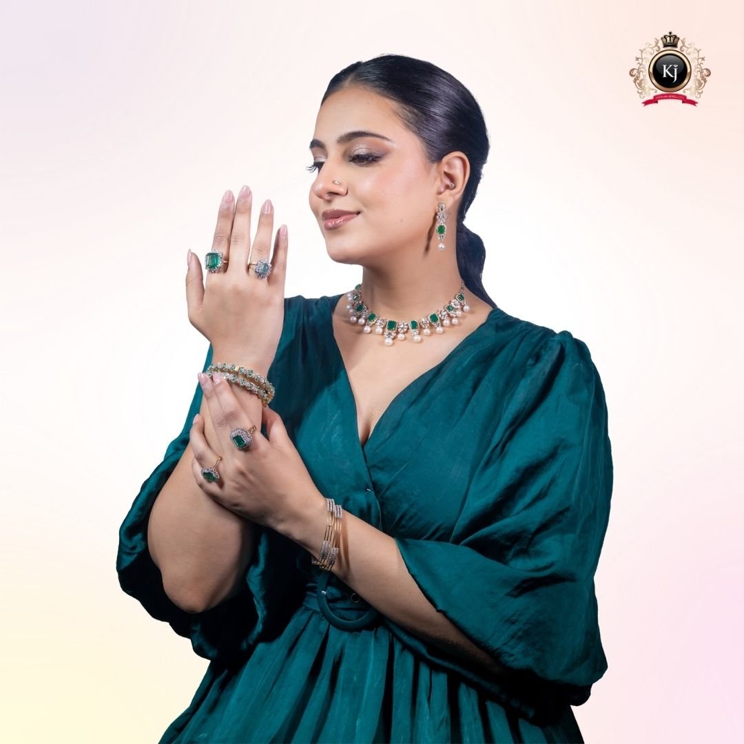 Designed for grand occasions and regal gatherings, the Emerald Harmony Bangles can be worn as standalone statement pieces or as part of the Emerald Symphony Collection, reflecting elegance with every graceful turn of the wrist.