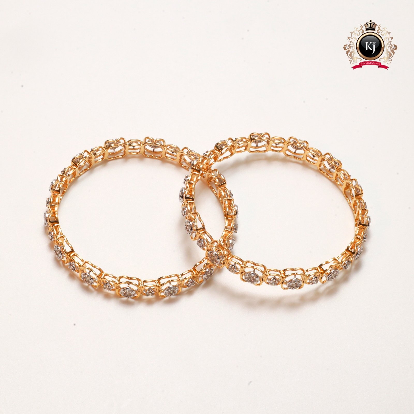 The interlinked floral motifs flow seamlessly around the wrist, creating a sense of continuous bloom and sparkling movement. Perfect for both celebratory occasions and as a signature luxury piece, these bangles are a testament to timeless sophistication and feminine elegance.