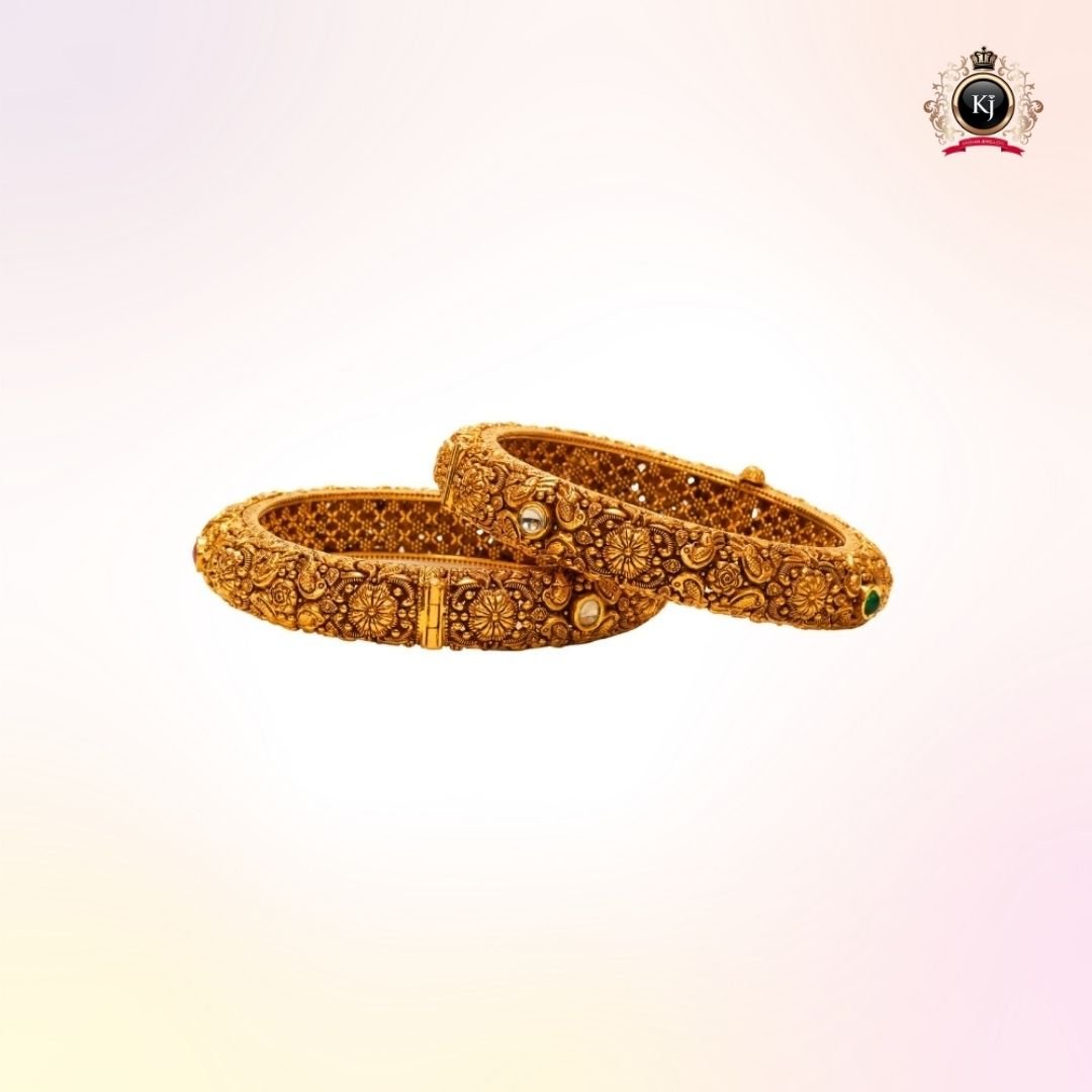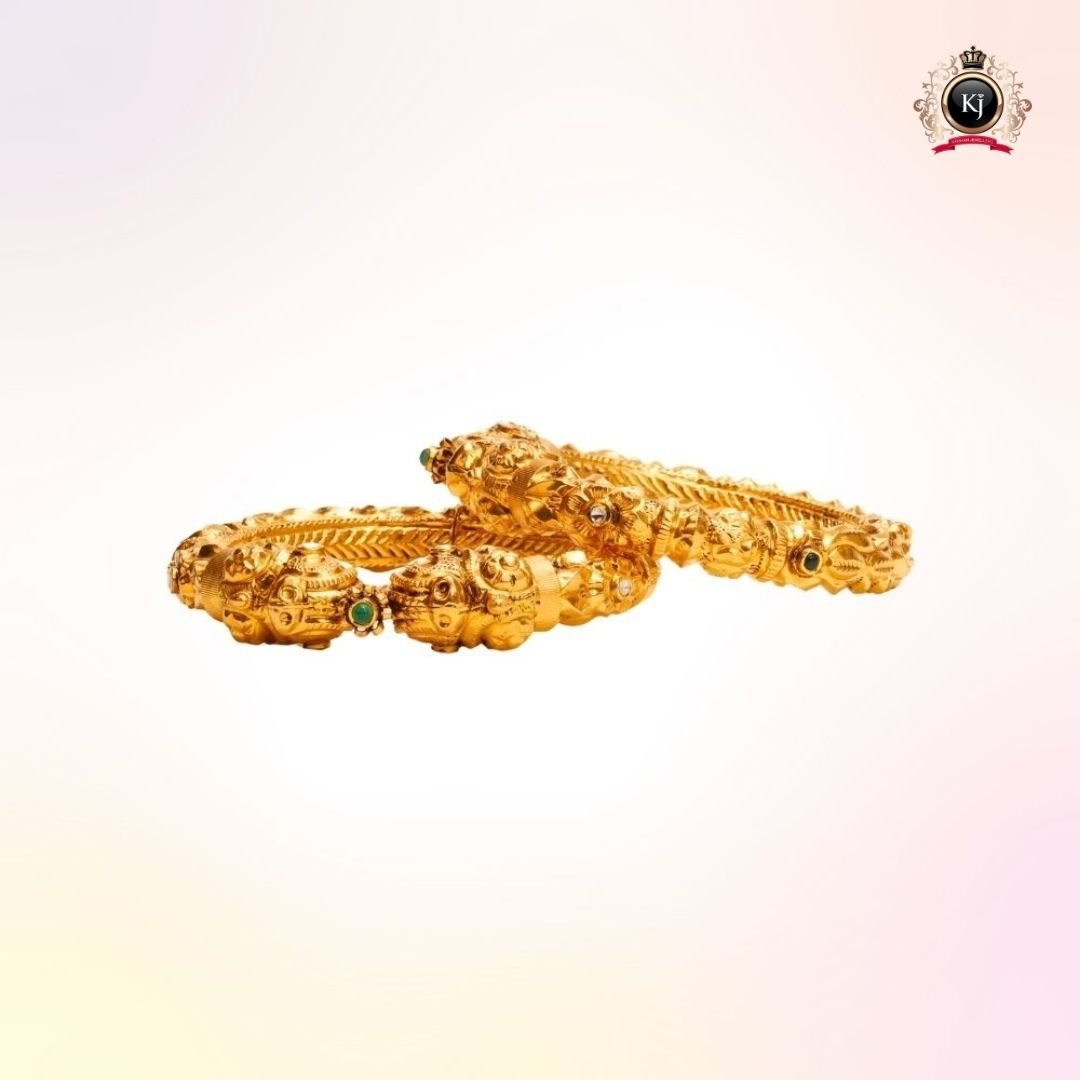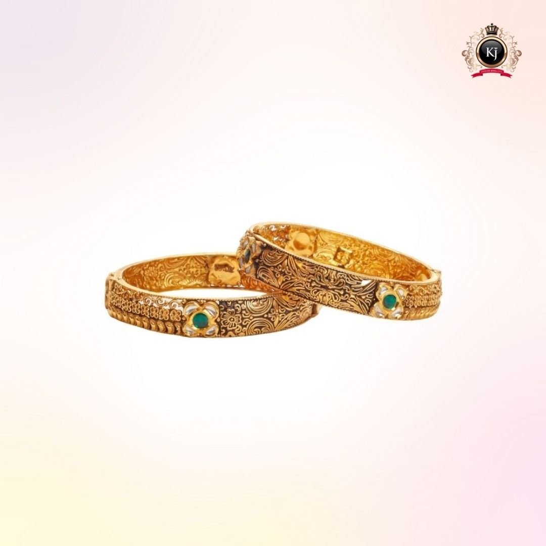 Every detail of this exceptional kada celebrates heritage and craftsmanship — from the delicate carvings to the subtle emerald accent symbolizing prosperity and grace.