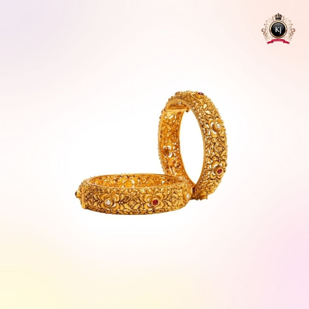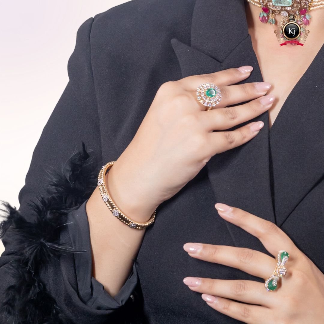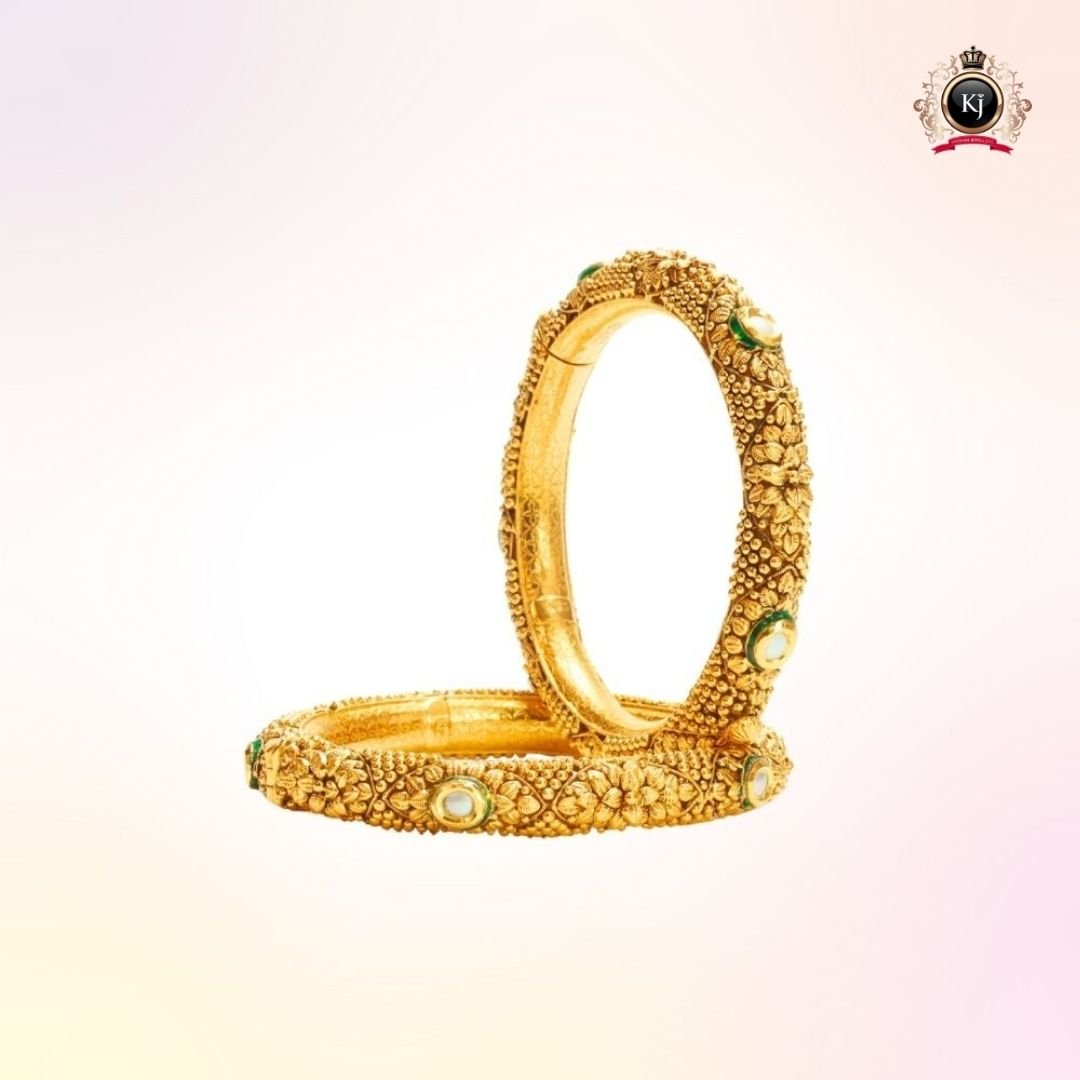 Every detail of this exceptional kada celebrates heritage and craftsmanship — from the delicate carvings to the subtle emerald accent symbolizing prosperity and grace.
