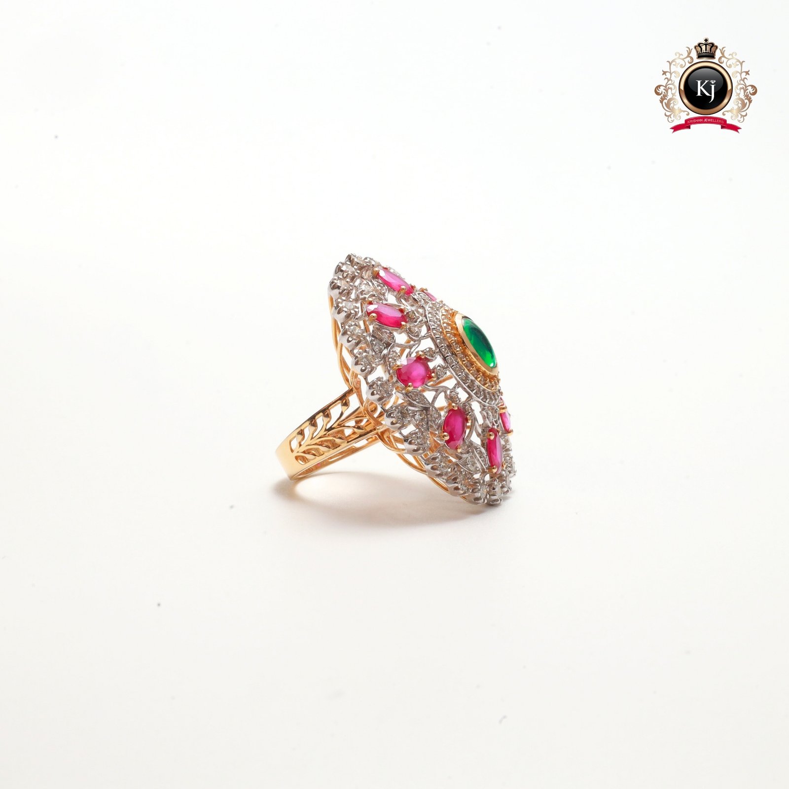 Type: Emerald–Ruby–Diamond Cocktail Ring